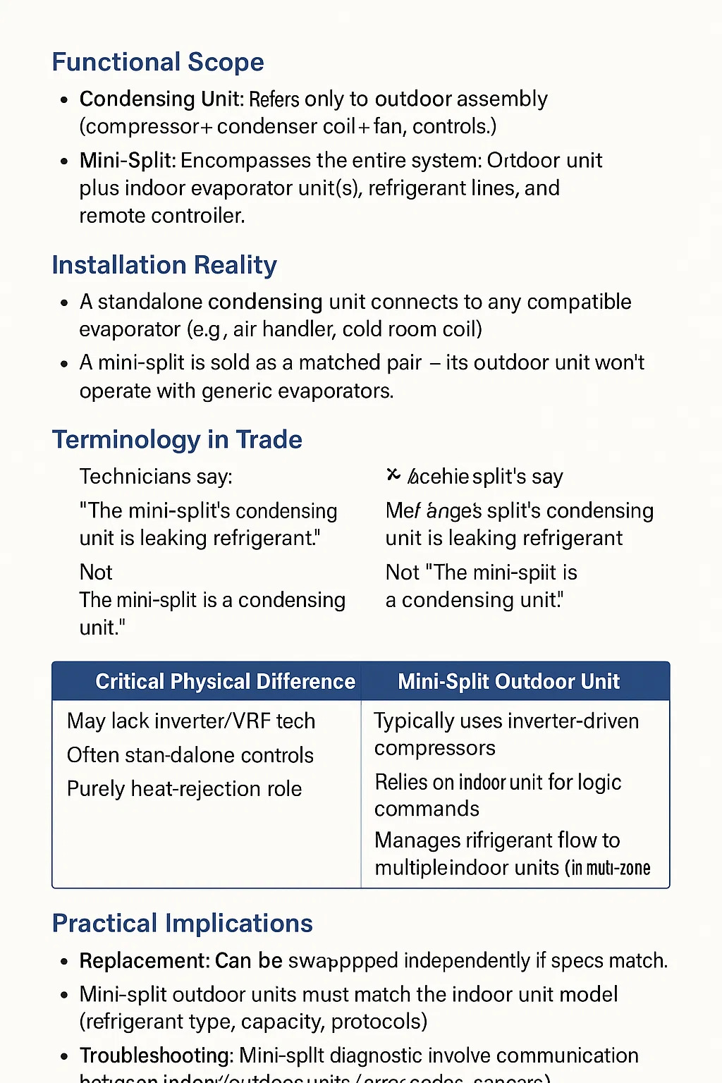 Mion-Split: Cuimsíonn sé an córas iomlán: aonad comhdhlúthaithe lasmuigh móide aonad (í) galaithe faoi dhíon, línte cuisneáin, agus rialtóir cianda.